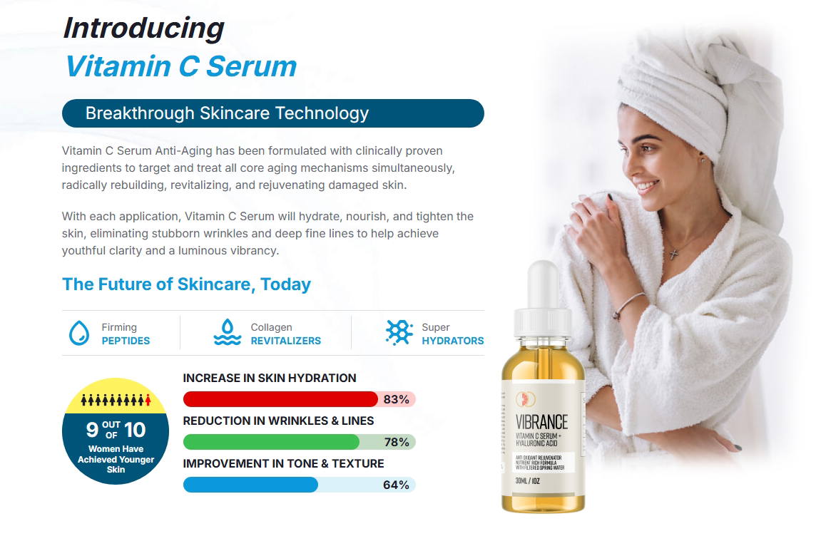 Unique among other skin care products, Vibrance Vitamin C Serum Australia enables your skin appear more youthful andhealthier. A practical thing known as Annica is responsible for this impact. Todo that, it objectives certain pores and skin regions at risk of displayingsigns of ageing and dullness.Age spots, dullness, dryness, and skin toneirregularities are a number of the skin issues this cream may also address. Thefirst symptoms of vintage age are the number one emphasis. It is comprised ofan expansion of components originating in several medical disciplines. Numerousfunctions work collectively to form the complete. Vibrance Vitamin C SerumAustraliais an anti-ageing therapy that progressively reduces the seenconsequences of getting older. An extract from the annica plant is answerablefor the product.